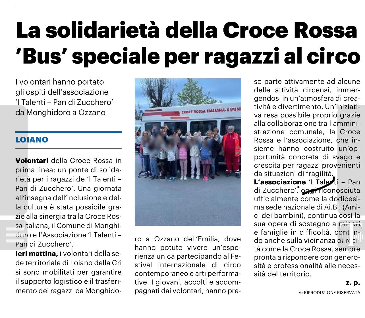 Ieri mattina, i volontari della sede territoriale di Loiano della Cri si sono mobilitati per garantire il supporto logistico e il trasferimento dei ragazzi da Monghidoro a Ozzano dell'Emilia, dove hanno potuto vivere un'esperienza unica partecipando al Festival internazionale di circo contemporaneo e arti performative. I giovani, accolti e accompagnati dai volontari, hanno preso parte attivamente ad alcune delle attività circensi, immergendosi in un'atmosfera di creatività e divertimento. Un'iniziativa resa possibile proprio grazie alla collaborazione tra l'amministrazione comunale, la Croce Rossa e l'associazione, che insieme hanno costruito un'opportunità concreta di svago e crescita per ragazzi provenienti da situazioni di fragilità.