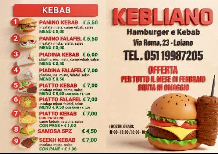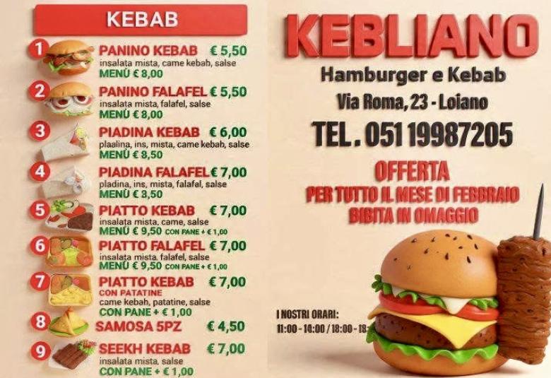 IL MENÙ’ DELLA NUOVA KEBABBERIA di via Roma 23 “Kebliano”, sarà molto vario con hamburger, patatine, chicken ecc. anche da asporto.