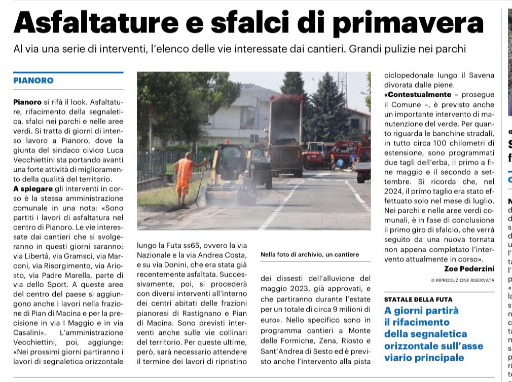 Enti e Istituzioni May 26 / 0 Comments A Pianoro si sistemano strade e parchi comunali A Pianoro sono in corso importanti lavori di miglioramento delle strade e parchi comunali. Oggi sul Carlino Aggiungi un commento Il tuo nome Email Il contenuto di questo campo è privato e non verrà mostrato pubblicamente. Homepage Oggetto Comment Riguardo ai formati testo HTML ristretto Elementi HTML permessi: <a href hreflang> <em> <strong> <cite> <blockquote cite> <code> <ul type> <ol start type> <li> <dl> <dt> <dd> <h2 id> <h3 id> <h4 id> <h5 id> <h6 id> Linee e paragrafi vanno a capo automaticamente. Indirizzi web ed indirizzi e-mail diventano automaticamente dei link.